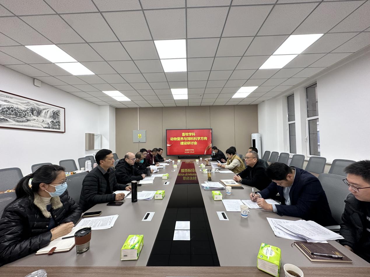 为扎实推进畜牧学学科动物营养与饲料科学方向建设,明确重点发展方向,2025年12月6日,在新疆农业大学动物科学学院会议室召开畜牧学科动物营养与饲料科学方向建设研讨会,本学科方向一共17名骨干教师及科研人员参加了会议。新疆农业大学党委副书记陈勇教授出席会议并作会议点评并提出要求。会议由杨开伦教授主持。
